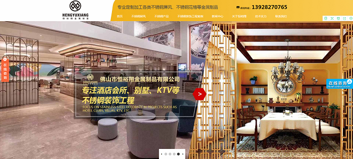 佛山市恒裕翔金屬制品有限公司是一家集設(shè)計(jì),加工,銷售為一體的整合型的不銹鋼制造商,生產(chǎn)加工經(jīng)驗(yàn)相當(dāng)豐富。公司秉著以質(zhì)量求發(fā)展,以誠信贏天下的宗旨,現(xiàn)有高檔真空離子散件電鍍爐2臺,6米剪折刨設(shè)備,專業(yè)加工銷售不銹鋼非標(biāo)制品為主,主要生產(chǎn)各種不銹鋼裝飾屏風(fēng),酒柜,KTV茶幾,展示架,博古架,欄桿扶手,不銹鋼拉手,不銹鋼雕塑,金屬藝術(shù)品,鋁銅雕塑制品,酒店家具配套五金,承接:酒店,會所,別墅,KTV,不銹鋼裝飾工程。