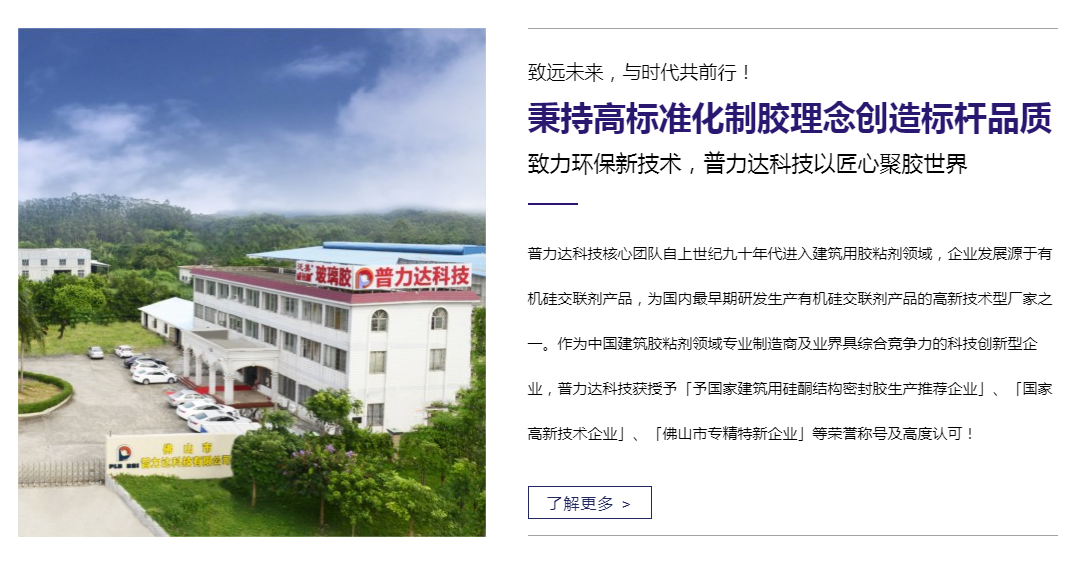 普力達科技核心團隊自上世紀九十年代進入建筑用膠粘劑領域,企業發展源于有機硅交聯劑產品,為國內早期研發生產有機硅交聯劑產品的高新技術型廠家之一。作為建筑膠粘劑領域專業制造商及業界具綜合競爭力的科技創新型企業,普力達科技獲授予「予國家建筑用硅酮結構密封膠生產推薦企業」、「國家高新技術企業」、「佛山市專精特新企業」等榮譽稱號及高度認可!