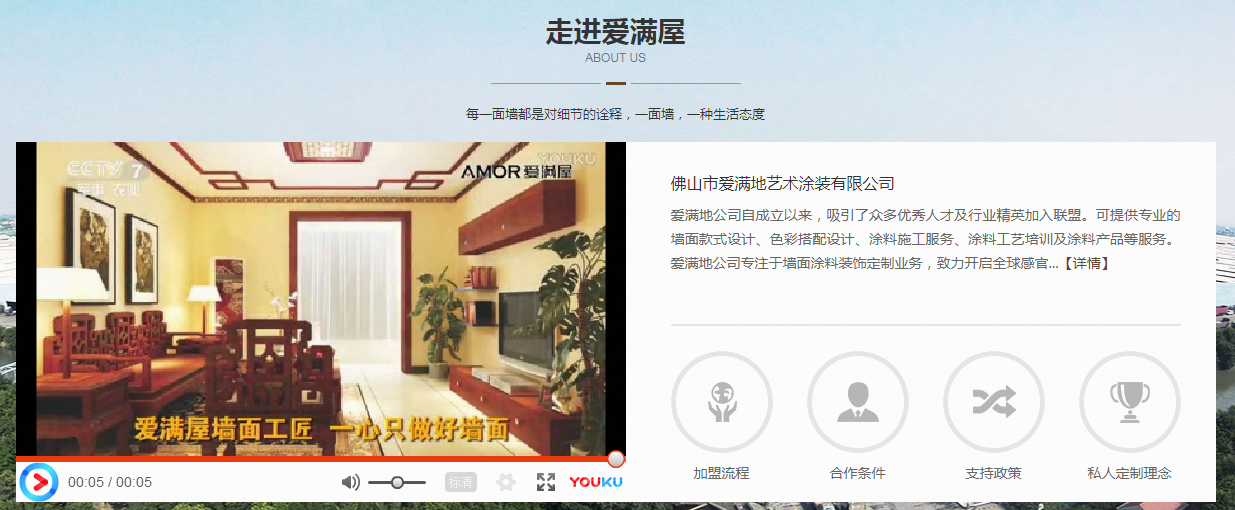 今天分享一個肌理壁膜加盟網站推廣案例——佛山市愛滿地藝術涂裝有限公司