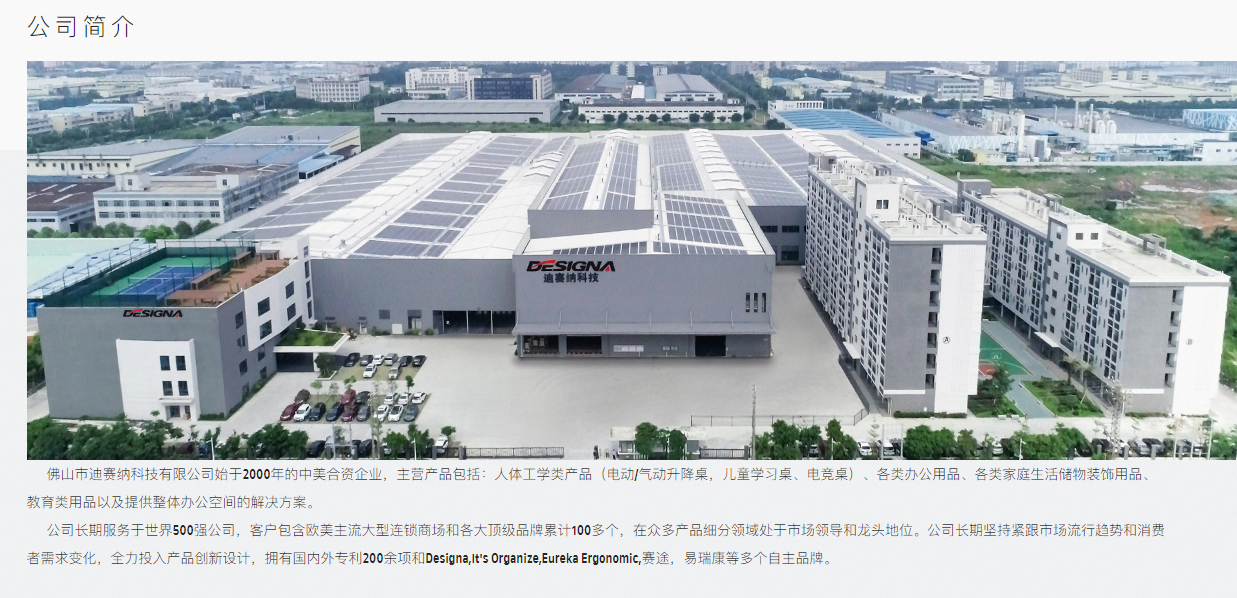 佛山市迪賽納科技有限公司始于2000年的中美合資企業(yè),主營產(chǎn)品包括:人體工學(xué)類產(chǎn)品(電動/氣動升降桌,兒童學(xué)習(xí)桌、電競桌)、各類辦公用品、各類家庭生活儲物裝飾用品、教育類用品以及提供整體辦公空間的解決方案。