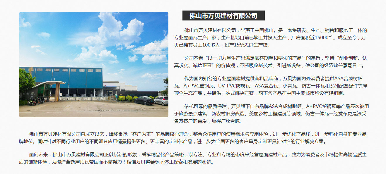 今天來分享一個(gè)合成樹脂瓦網(wǎng)站建設(shè)案例——佛山市萬貝建材有限公司