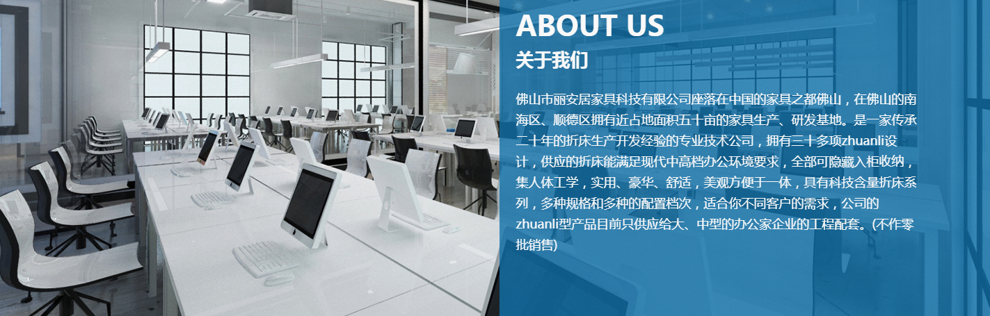 佛山市麗安居家具科技有限公司座落在家具之都佛山,在佛山的南海區、順德區擁有近占地面積五十畝的家具生產、研發基地。是一家傳承二十年的折床生產開發經驗的專業技術公司,擁有三十多項zhuanli設計,供應的折床能滿足現代辦公環境要求,全部可隱藏入柜收納,集人體工學,實用、豪華、舒適,美觀方便于一體,具有科技含量折床系列,多種規格和多種的配置檔次,適合你不同客戶的需求,公司的zhuanli型產品目前只供應給大、中型的辦公家企業的工程配套。(不作零批銷售)