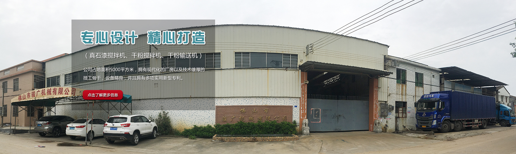 佛山市駿廣機械有限公司專業生產:真石漆攪拌機,真石漆混合機的廠家,干粉輸送器等機械設備,真石漆設備產品遠售到了各地及海外各地。駿廣機械有限公司位于有為文化之鄉---廣東省佛山市南海區丹灶鎮,靠近桂丹路、西二環高速、廣珠鐵路西線、交通方便。公司占地面積5000平方米。是一家生產制造真石漆攪拌機設備的機械企業,真石漆攪拌機從研發到生產制作,每一環節都緊抓產品質量,并且擁有多項國家實用新型專利。多年來,憑著過硬的技術和品質,贏得了廣大客戶的信任和支持。
